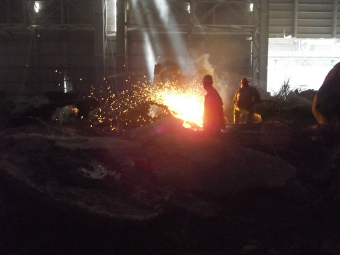 ![]() 切割大塊渣鋼 |